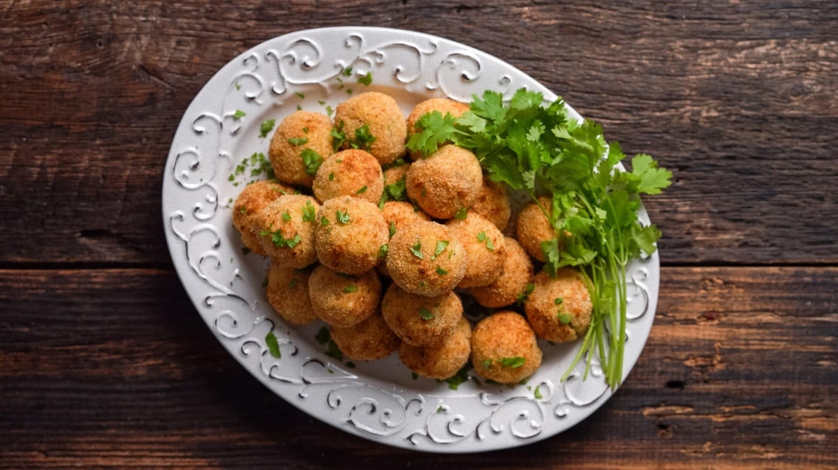 Store the potato balls in an airtight container for 3-4 days in the fridge. For reheating, reheat them in an air fryer at 350°F for about 5 minutes until warmed through. Note that some crispiness may be lost. While freezing isn’t ideal due to air frying, you can store them for up to a week in an airtight container if necessary.