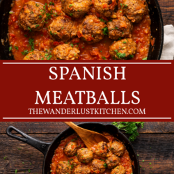 One thing I love about this Spanish Meatballs recipe is how versatile it really is. You can have these as a main dish, serve it over pasta, or even grab a loaf of white bread and mozzarella cheese and make a homemade meatball sandwich. If you are looking for other delicious meatball recipes you have to check out my Thai Curry Coconut Meatballs and Syrian Meatballs and Sweet Potatoes.