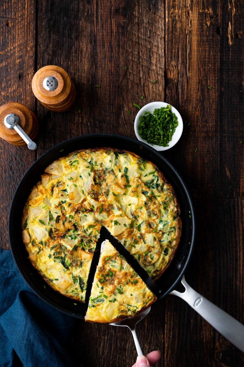 - Add Chives for Freshness: Sprinkle green chives on top of your potato frittata at the end. They’ll make it look fresh and colorful, and they taste good too.