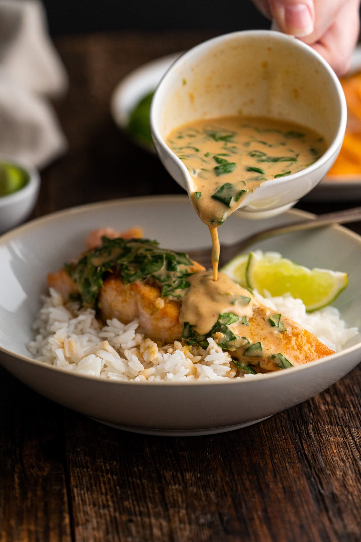 - Herbs and Spice Variation: For a fresh twist on Coconut Curry Salmon, try adding fresh herbs like cilantro, basil, or mint for an aromatic twist. Spice it up with turmeric for warmth, cumin for nuttiness, or a dash of cayenne for extra heat.