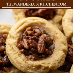 These Pecan Pie Cookies bring all the indulgent flavors of a classic pecan pie into a perfectly portioned handheld treat. These cookies feature a tender, buttery base like you would see with a pie crust, and topped with a rich, gooey caramel-pecan filling that bakes into sweet, nutty perfection.