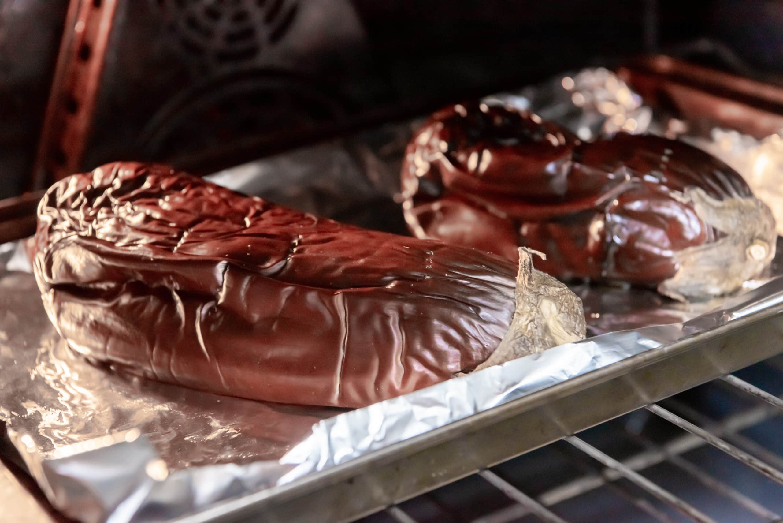 Eggplants baking in the oven.