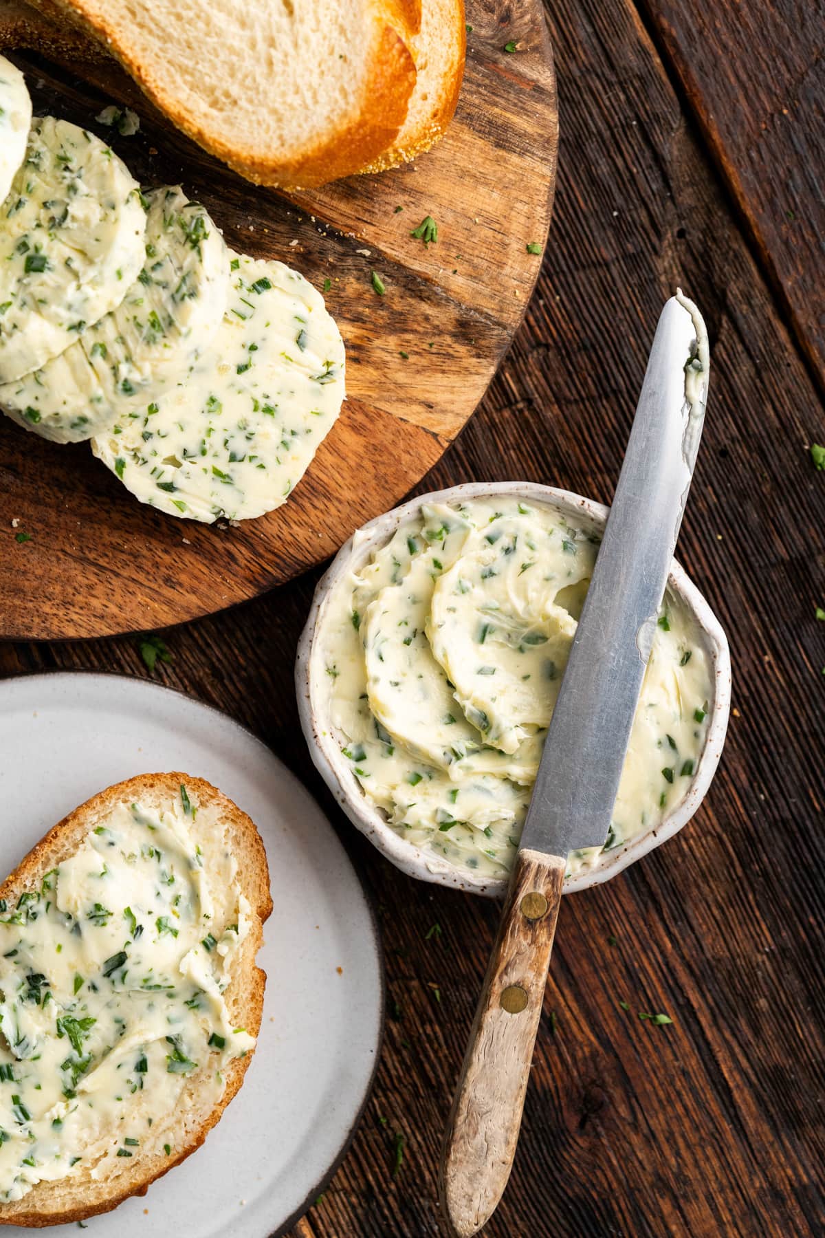 This homemade garlic butter is an easy way to add flavor to any meal. It is full of fresh herbs and buttery, garlicy, goodness!
