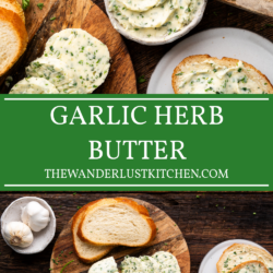 This Garlic Herb Butter can be whipped up in a matter of minutes and is creamy and full of flavor. It can regular butter or turned into a sauce and it tastes delicious on everything!