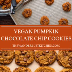 It is Fall and so I naturally gravitate towards all things pumpkin which is what inspired these vegan pumpkin chocolate chip cookies. The combination of chocolate chips and pumpkin in a moist and melty cookie is what Fall dreams are made of.