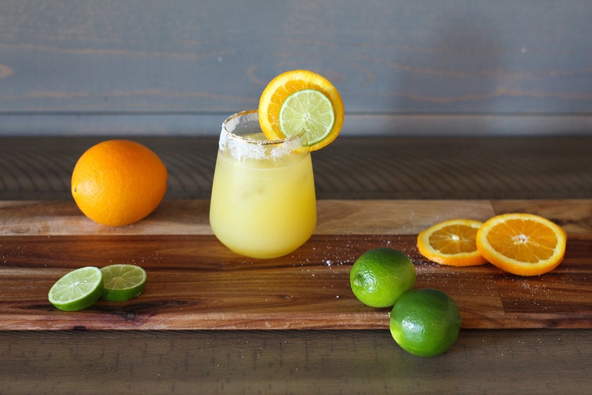 - Pour into your prepared glass, garnish with a lime and orange slice, and enjoy!