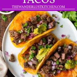 These Vampiro Tacos are a delicious fusion of crispy tortillas, and juicy marinated steak, topped with melted cheese and fresh guacamole.