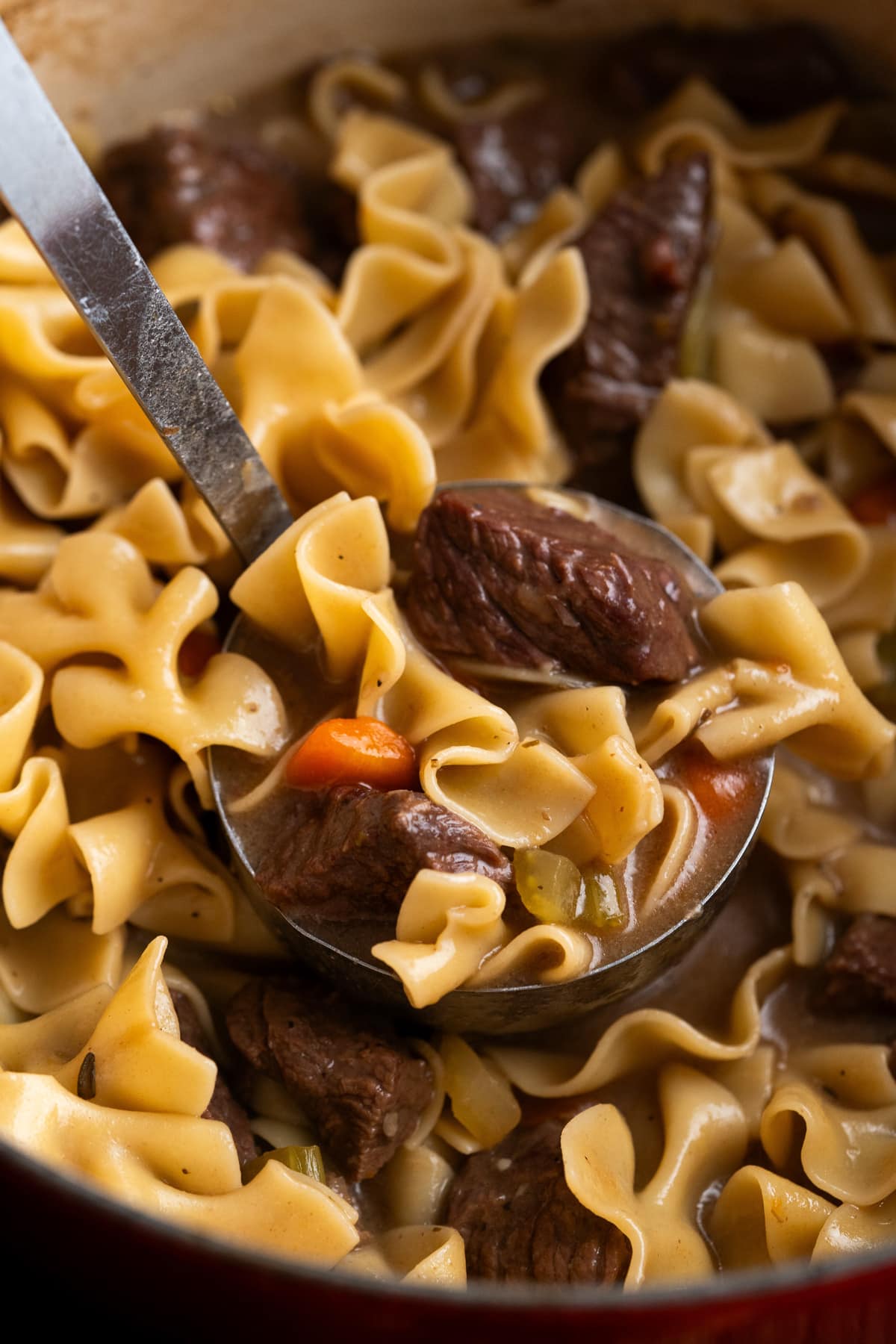 This soup is hearty so if you are wanting more of a broth-based soup and less of a noodle based soup I would recommend halving the noodles.