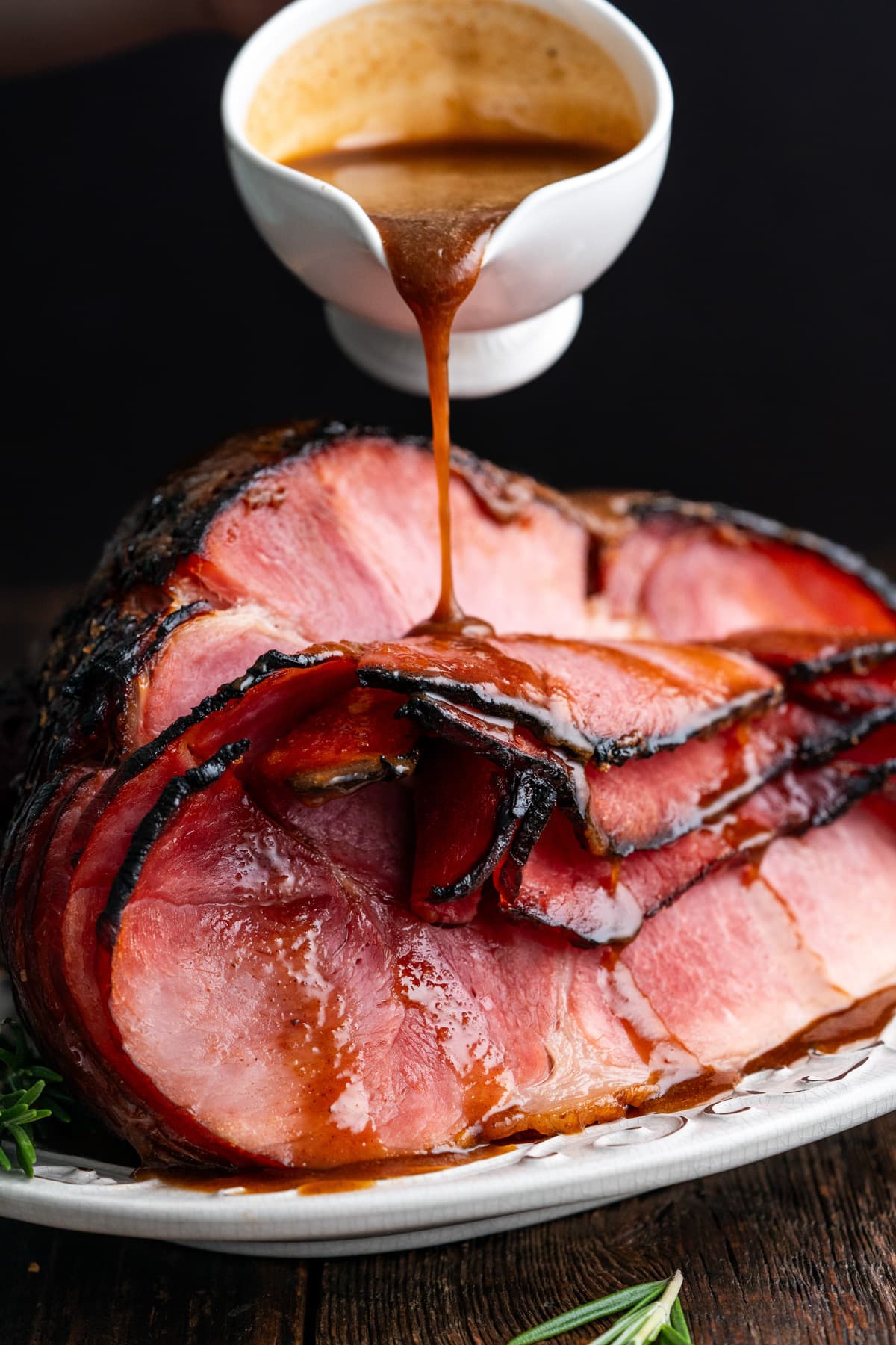- Pour the glaze over the ham, serve and enjoy!