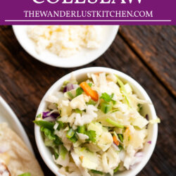 I love serving this coleslaw at summer cookouts alongside my Puerto Rican Pernil and Hawaiian Macaroni Salad.
