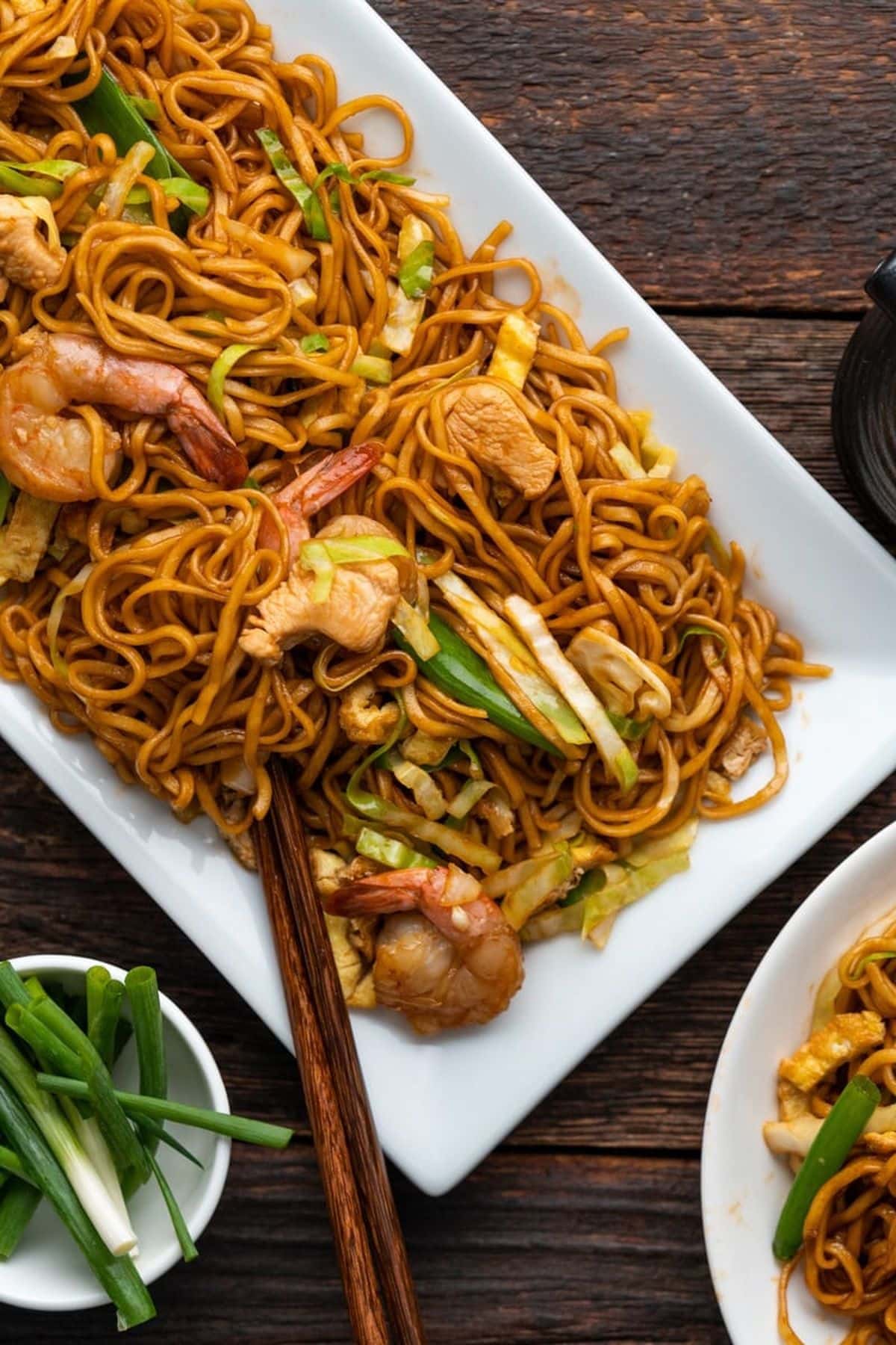 - Then, add the noodles, green onions (saving some for garnish), and sauce. Toss for 1-2 minutes until the sauce reduces and the noodles slightly caramelize.